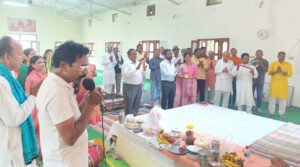योग की पंडिताई करने वाले देवघर महराज ने मंत्रोच्चार के साथ कलक्टर एवम उनकी धर्मपत्नी को कलेवा बंधन किया। आरती के पश्चात योग केंद्र के सचिव मोहन सेनापति ने योग केंद्र संचालन पर संक्षिप्त प्रकाश डाला।