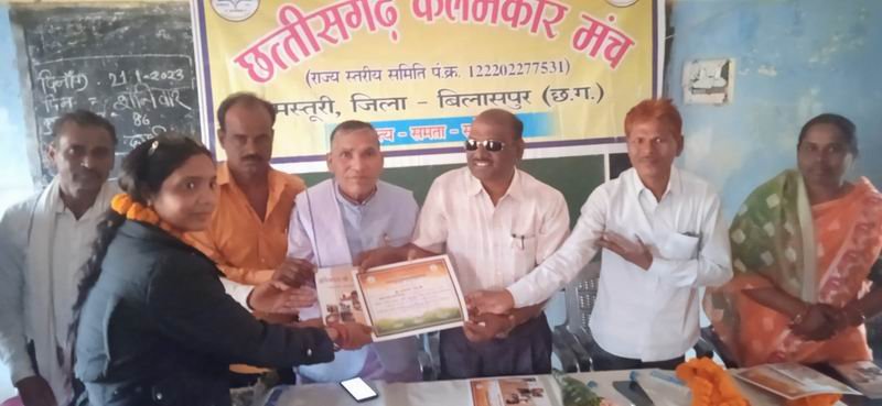 जानकारी अनुसार अधिवक्ता मणिशंकर दिवाकर गदगद (संपादक) सह- संपादक डिजेंद्र कुर्रे कोहिनूर , रमेश कुमार रसिय्यार जुगेश बंजारे धीरज उमाशंकर दिवाकर, श्रीमती गंगाशरण पासी, अनील जांगड़े गंवईहा देव मानिकपुरी श्वेत क्रांति, अशोक बंजारे ( शिक्षक/ कवि), गणेश महंत नवलपुरिहा, जवाहर बघेल, श्रीमती ननकी पात्रे मिश्री, वेदप्रकाश खाण्डे़कर, भुवन दास जांगड़े गौटिया,हिरऊ जांगड़े ष् बेगाना डॉ. नरेश जोशी, कमल किशोर नवरंगे, ओमप्रकाश पात्रे, श्री बल्लू बल ठाकुर, दुर्गा प्रसाद कुर्रे, जलेश्वर दास मानिकपुरी, अनिकेत टोण्ड्रे, व साथ मे पत्रकार बंधुओ में अरूण सोनी, मोहन पटेल, दुर्गा प्रसाद सेन, लाला ठाकुर, श्रीमती योगिता साहू, आशिष कंठले, उमाशंकर दिवाकर संकलनकर्ता ( पत्रकार) को व डाक्टर देवा देवांगन (प्रदेशाध्यक्ष) ,प्रणीश चौबे (जिलाध्यक्ष अधिवक्ता संघ),सतीश वर्मा (विशेष लोक अभियोजक), महेंद्र देवागन (नोटरी अधिवक्ता) , राजेश कुमार मिरी, महेंद्र प्रताप सिंह (अधिवक्ता) भी साल श्रीफल देकर सभी को एक मुस्कान राष्ट्रीय साझा काव्य संग्रह पर कला कौशल सुरगम्य साहित्य रत्न 2023 से व मैं बेजुबान हूँ पर उत्कृष्ट लेखन पर भी साल श्रीफल देकर हर्षित मन से सम्मानित किये।