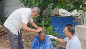 चित्र-कटिंग शेविंग कराते हुए