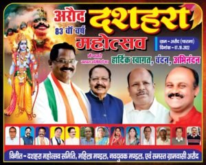 चारामा विकासखंड के अरौद में इस बार 83 वां महोत्सव मनाये जाने की तैयारी विगत दो माह पूर्व से की जा रही है। इस दशहरा पर्व पर मुख्य रूप से मुख्य अतिथि के रूप में छत्तीसगढ़ प्रदेश के संस्कृति एवं खाद्व मंत्री अमरजीत सिंह भगत का आगमन होने जा रहा है। आयोजन की अध्यक्षता विधानसभा उपाध्यक्ष छत्तीसगढ़ एवं भानुप्रतापपुर विधानसभा के लोकप्रिय विधायक मनोज मंडावी की उपस्थिति में तय हुआ है। विशिष्ट तिथि के रूप में गौ सेवा आयोग के सदस्य नरेंद्र यादव के साथ ही हेमंत धुव (जिला पंचायत अध्यक्ष) हेमनारायण गजबल्ला उपाध्यक्ष जिला पंचायत कांकेर,बीरेश ठाकुर (सदस्य बस्तर विकास प्राधिकरण) सांसद मोहन मंडावी, इंटक के अश्वनी मिश्रा रायपुर, गौतम लुंकड़ वरिष्ठ कांग्रेसी छ.ग. मिथलेश शोरी जिला पंचायत सदस्य, दीपा सलाम सदस्य जनपद पंचायत,ठाकुर राम कश्यप अध्यक्ष ब्लाक कांग्रेस कमेटी चारामा आदि प्रमुख रूप से शामिल हो रहे हैं।