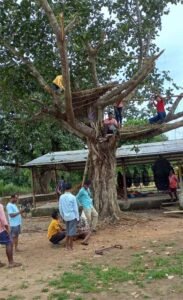 चित्र अरौद दशहरा मैदान के पास ही हनुमान के उड़ते आकाश मार्ग से आने की तैयारी में लगे गांव की तकनीकी टीम चित्र में देखी जा सकती है। सा कि इस वर्ष बार-बार खराब मौसम आयोजन में खलल डाल रहा है। लगातार बारिश हो रही है। इसे देखते हुए आयोजन समिति चिंतित है। क्योंकि आयोजन में रावण दहन आतिश बाजी में प्रयोग किए पटाखे में नमी आ जायेगी। लेकिन इसे लेकर भी जो तकरीबन 45 फीट के रावण को फ्रेम के माध्यम निर्माण किया जा रहा है,उसमें प्रयोग किए जाने वाले पटाखे को पालीथीन से ढंक कर फिट किया जा रहा है ताकि नमी का प्रभाव न पड़े। पटाखे की बत्ती तो वैसे भी इलेक्ट्रानिक रूप से स्वीच से विस्फोट किया जाना है। लेकिन अधिक बारिश यदि हुई तो निश्चित ही आयोजन प्रभावित होगा।