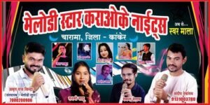 आज 18 अगस्त को देर शाम चारामा नगर के समता रंगमंच में मेलोडी स्टार नाईक का आयोजन सांस्कृतिक मंच में वर्तमान में जन जन में लोकप्रियता अर्जित कर बुलंदियों पर पहुंचे गायक सुनील सोनी शिरकत करने जा रहे हैं। लोगों की उत्सुकता इस कलाकार को देखने,जानने एवं सुनने का है। हालांकि आज के इस कार्यक्रम में वे लोगो से रूबरू होने आ रहे हैं,जहां टीम के माध्यम सांस्कृतिक प्रस्तुती नहीं होगी लेकिन वे आम लोगों के बीच होंगे।